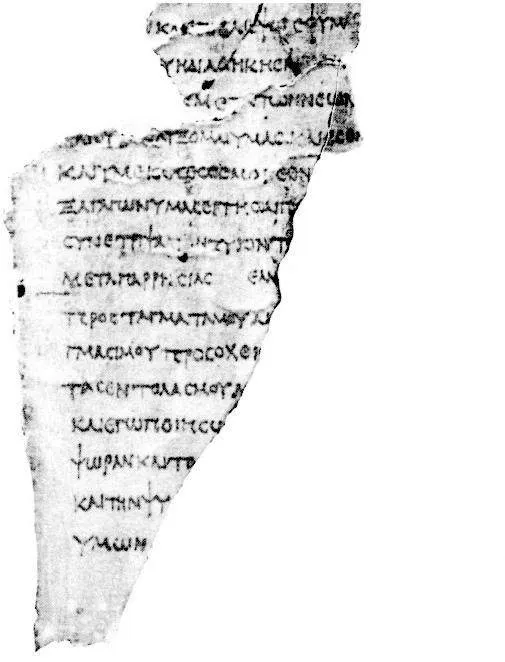 카이로 그니자에서 발견된 재활용 문서. 윗부분에 희미하게 남아 있는 글자(그리스어)가 헥사플라의 흔적이다.
