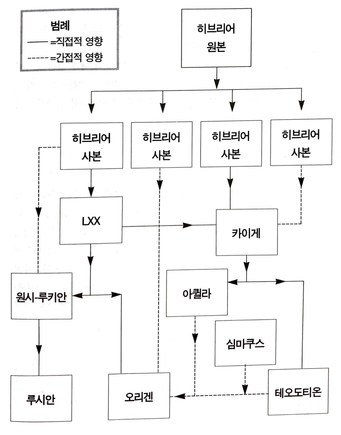 위의 내용을 종합해보면 히브리어 성서의 그리스어역 본문의 역사는 다음의 단계로 구분해서 생각해 볼 수 있다.