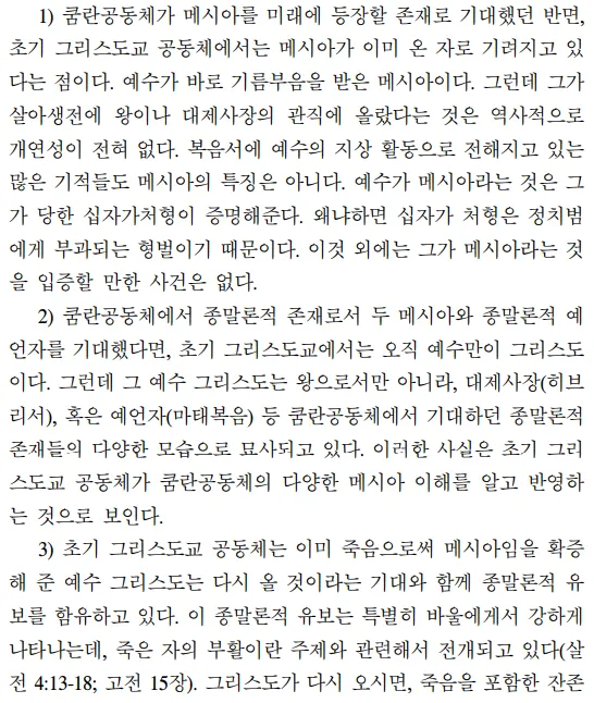 쿰란 문서를 통해 당대의 사람들의 신앙과 방향성을 보다 분명히 알 수 있음.