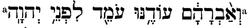 창세기 18:22는 “아브라함이 여호와 앞에 서 있었다”를 적고 있지만, 본문비평장치란에 있는 티쿠네 소프림 란을 보면 본래 “여호와가 아브라함 앞에 서 있었다”로 되어 있었음을 언급하고 있다. 이러한 문장이 다소 불경하게 느껴졌기 때문에 어순을 바꾸었을 수 있다.