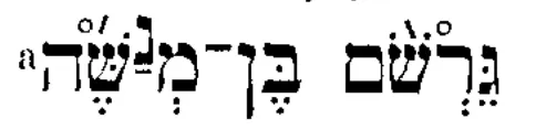 이 경우 위첨자를 첨가함으로 모세의 이름을 므낫세로 변경하고 있다. 아마도 이러한 수정을 통해 모세가 우상숭배를 했던 제사장을 손자로 두었다는 언급을 수정하려 했던 것 같다.