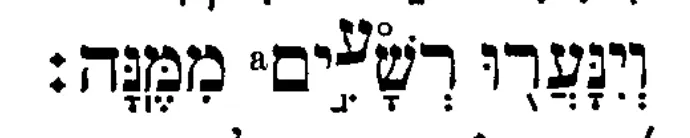 마소라 본문에는 일반적인 위치보다 좀 위쪽에 적힌 글자들이 나타난다. 이러한 위첨자들은 다음의 4구절에서 나타난다 - 삿 18:30; 시 80:14; 욥 38:13,15.