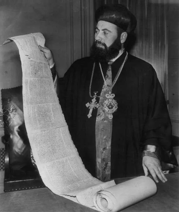 1947년 여름에 베두인들은 직접 주교를 찾아갔고, 처음에 사무엘 주교는 베두인들의 허름한 옷 차림 때문에 구걸하러 온 것으로 착각하여 돌려 보내려고 했으나, 곧 이들이 고문헌을 갖고 있다는 사실을 알게 되어, 그들에게서 4개의 두루마리를 24파운드(당시 돈으로 100불)에 구입한다. 사무엘 주교가 당시 베두인들에게서 구입했던 두루마리는 이사야 두루마리, 공동체 규율, 그리고 하박국 주석서와 창세기 외경서 였다.