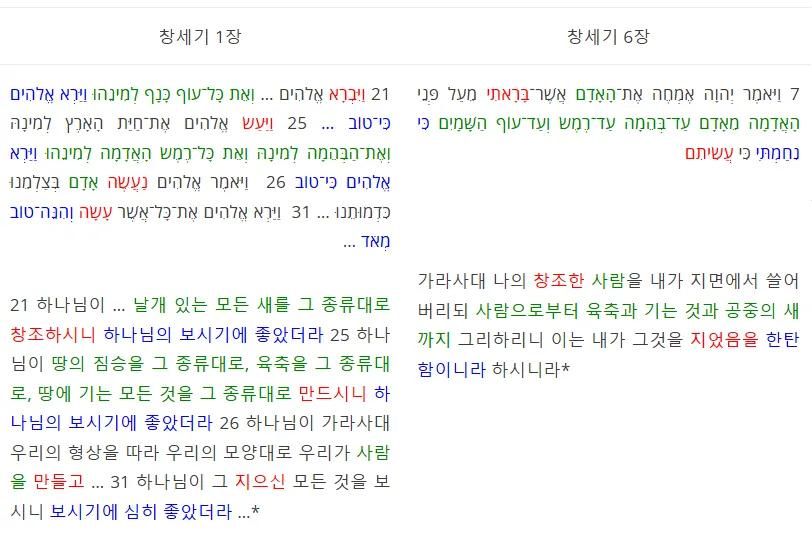한글 본문에서 “짓다”, “만들다”로 번역된 히브리어 동사는 모두 עשה로 본래 동일한 단어이다.